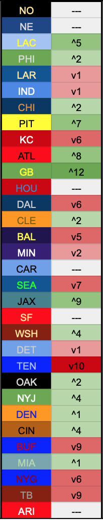 Lots of movement, much of which makes no sense, most of it probably just based on my preconceptions about which teams should be good or bad instead of on roster moves.