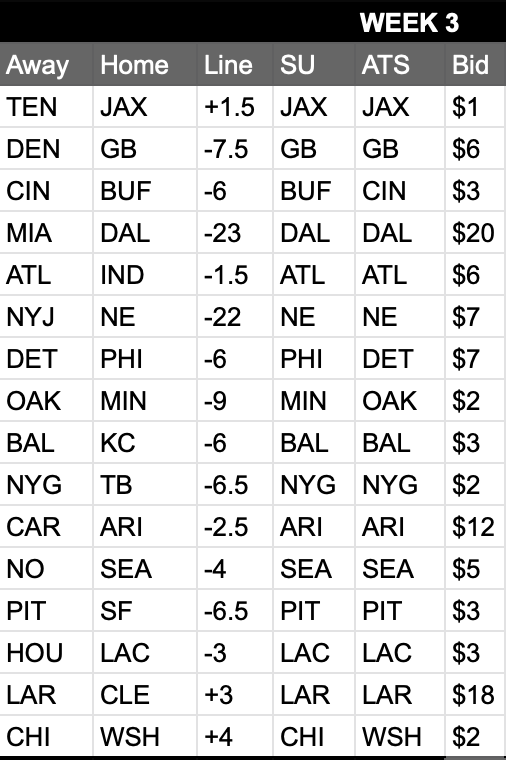 Underdogs: JAX, ATL, BAL, NYG, ARI, PIT