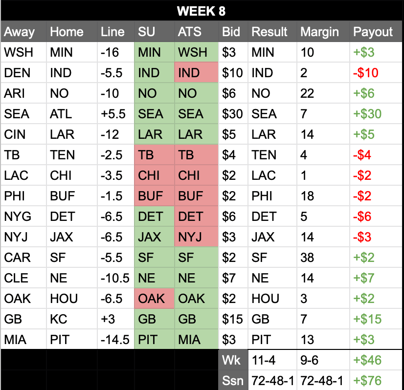 Survivor: 6-2 BAL, NE, GB, LAC, KC, CAR, SEA, LAR
