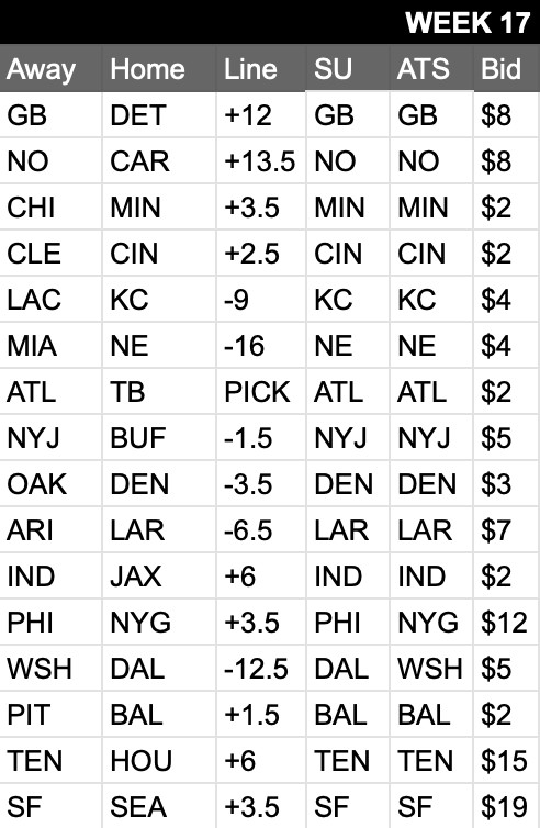 Locks: GB, NO, KC, NE, DEN, LAR, BAL, TEN