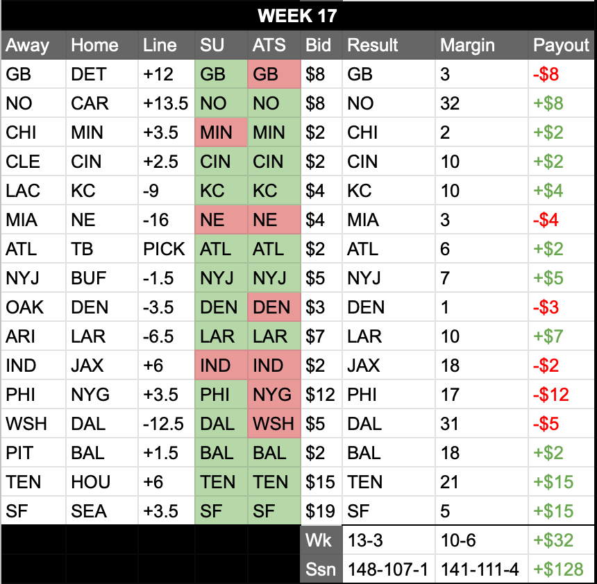 Survivor: 12-5 BAL, NE, GB, LAC, KC, CAR, SEA, LAR, DAL, NO, OAK, CLE, NYJ, MIN, SF, IND, TEN