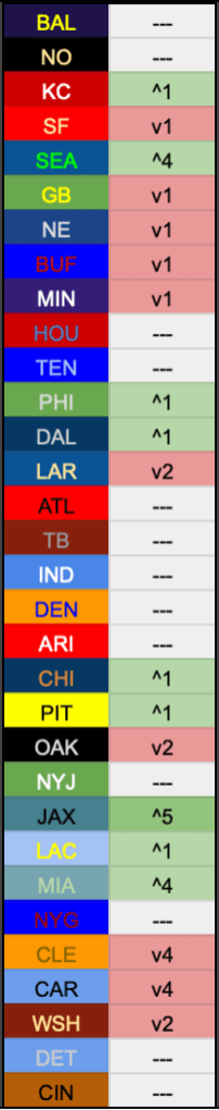 Most of the bottom half of the league finds their final resting place until the draft. Some teams will move depending on coach hirings and whatnot but in general this is the final verdict. It’s tempting to move NOLA up to 1 or Detroit down to 32, but the Ravens shouldn’t move down in a week where their starters rested, and the Lions’ QB plan of Hope Matt Stafford Still Has A Spine In 8 Months is better than the Bengals’ QB plan of Draft Joe Burrow And Hope He Can Make Something Out Of This Roster.