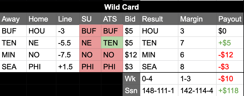 Postseason: 0-4 / 1-3 / -$10