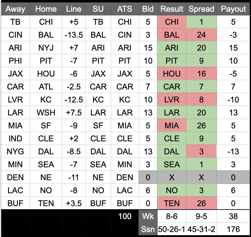 The Chargers could lose to anyone but it’s impossible to beat them by more than 8 points. - Titans over Bills