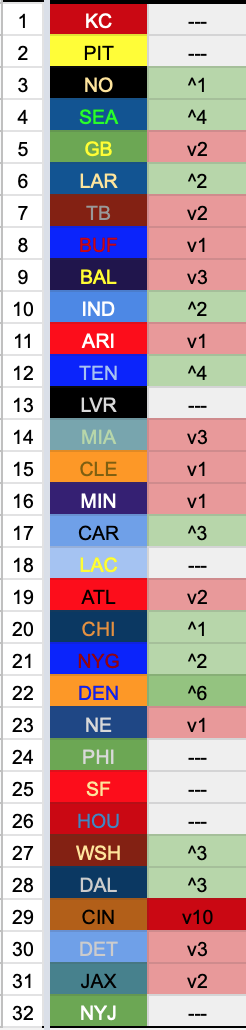 The Colts get to the top 10, the Seahawks continue to confuse, the Jets stay solidly in the last spot, and the Bengals drop off a cliff without a QB.