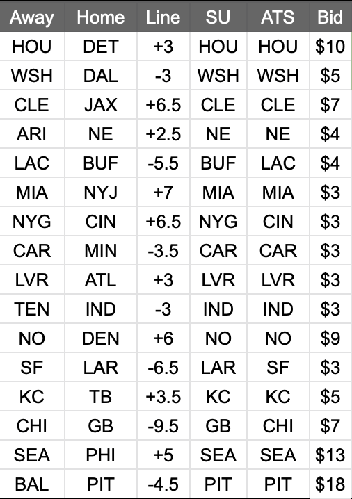 Needles: BUF/LAC, NYG/CIN, LAR/SF, GB/CHI