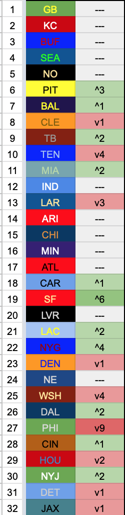 Nobody moves a ton, except the Eagles who are somehow the first team eliminated from the worst division. Oh and hey the Jags are the Worst now.