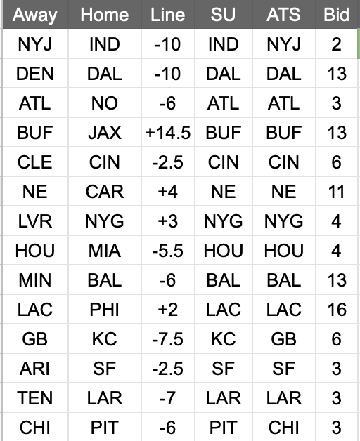 Needles: IND/NYJ, KC/GB, PIT/CHI