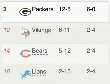 Aaron Rodgers is dead to me now, which means the Lions are perhaps my favourite team in the division. (Not really, I can’t quit you, Packers, just your lying-ass QB). The Vikings are capable of taking any team to OT but they’ll lose that OT to about 20 out of the 32. The Bears are just here to develop Justin Fields and play out Nagy’s last season. It would be pretty funny for the Lions to go winless, but it would also be absolutely devastating.