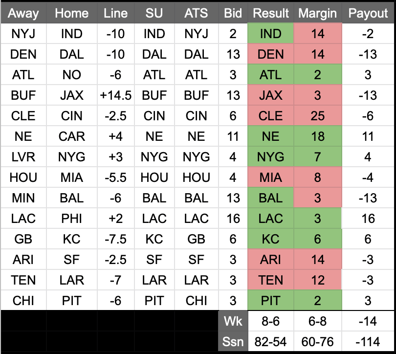 We should have known that Josh Allen vs Josh Allen would result in a rift in spacetime. It’s not often that my #1 ranked team loses to my #32 ranked team, so there’s some rethinking to do here. - Browns over Bengals