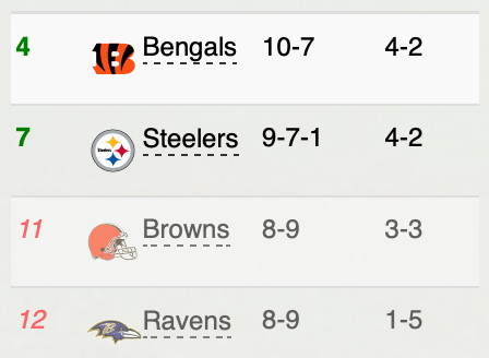 Perhaps the most confusing division result, overall, when considering how this season started. And yet, doesn’t it make sense on the larger scale that Roethlisberger dcsked his way into the playoffs one last time, and that the Browns couldn’t sustain success, and that the Ravens’ multitude of injuries finally caught up to them? The Bengals though, that came out of nowhere.