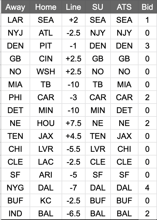 Underdogs:Â SEA, NYJ, DEN, CLE, SF, BUF