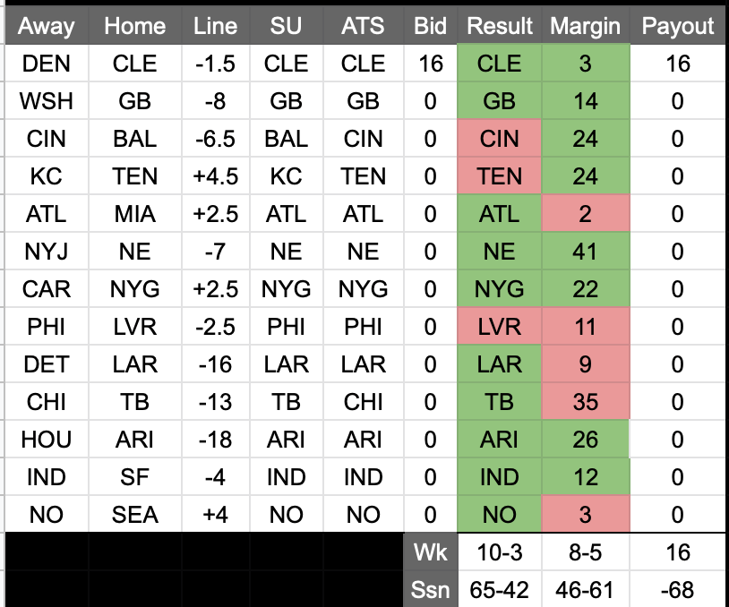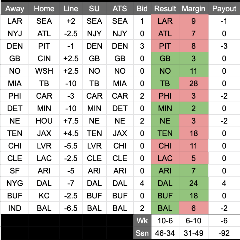 Underdogs:Â GB, DET, PIT, TEN, JAX, NO, WSH, DAL
