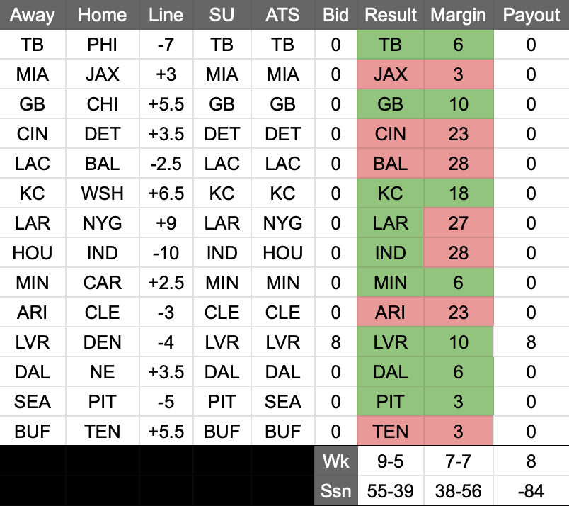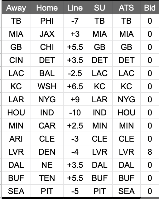 Needles: BUF/MIA, LAC/NE, KC/NYG