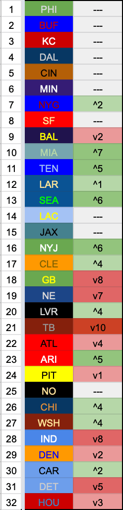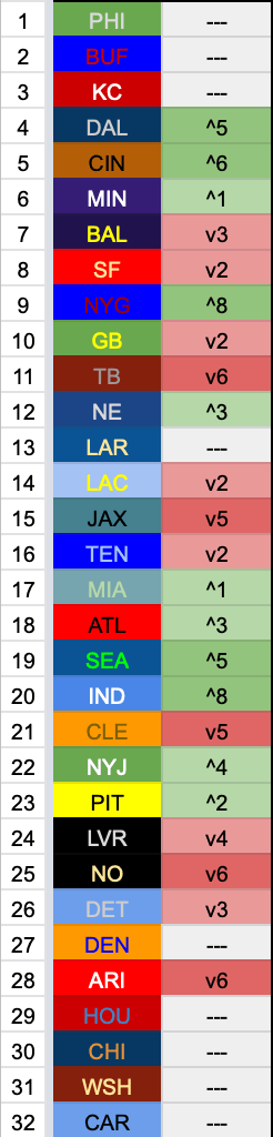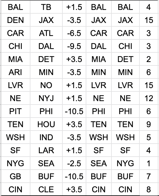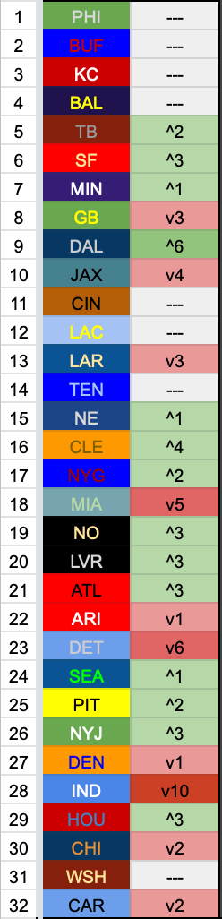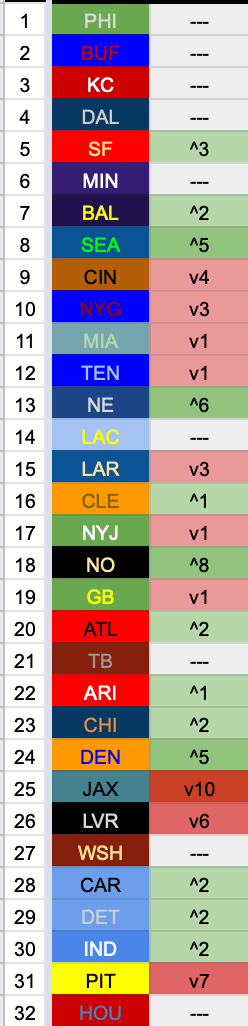 Locks: BAL, JAX, DAL, PHI, TEN, BUF