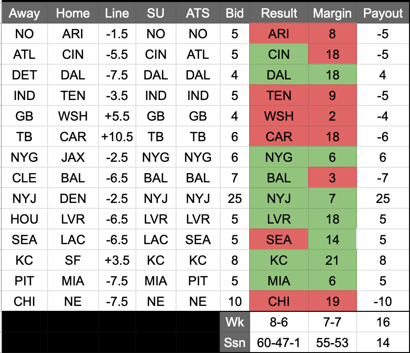 Survivor: 5-3 (KC, CIN, BAL, GB, BUF, TB, LVR, JAX)