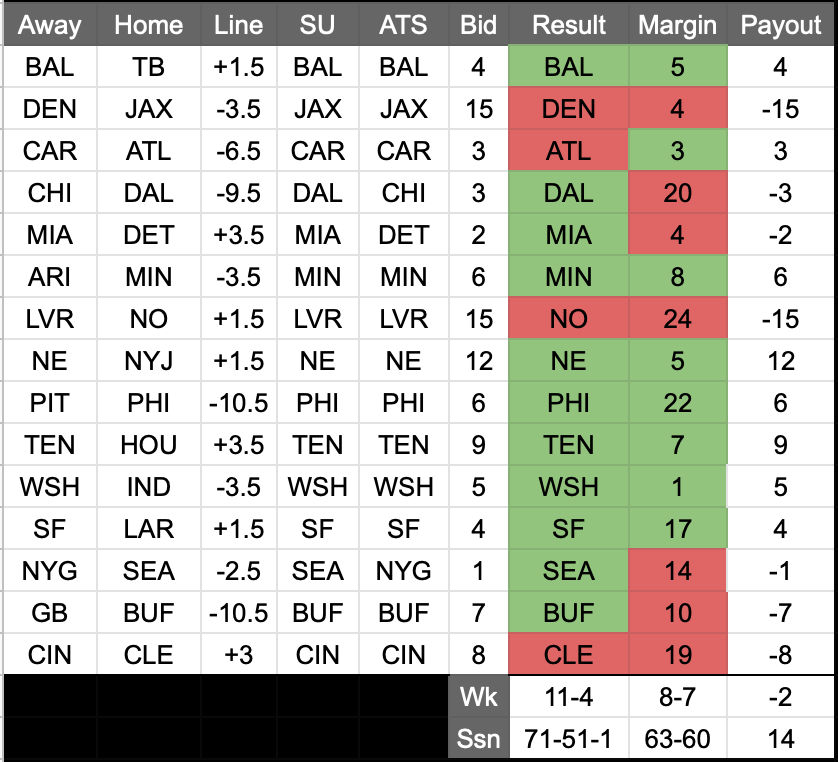 Needles: DAL/CHI, MIA/DET, SEA/NYG