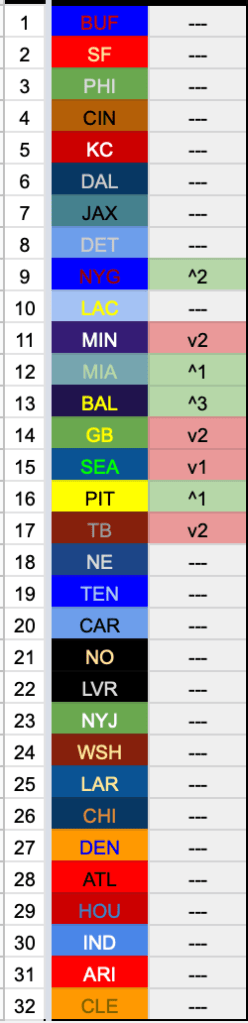 Highway to Hell: HOU, CHI, DEN, ARI, LAR, IND, ATL, CLE, LVR, CAR, NO, NYJ, WSH, TEN, PIT, NE, DET, GB, SEA, LAC, MIA, BAL, MIN, TB, JAX, NYG, BUF, DAL, SF, CIN