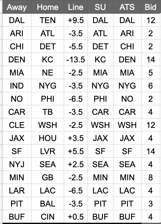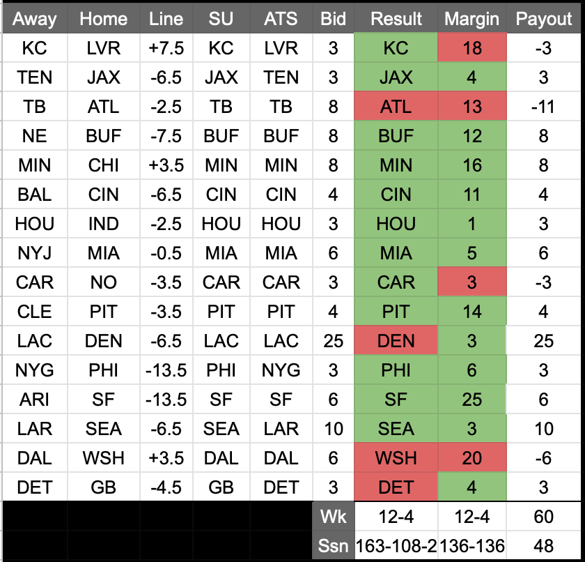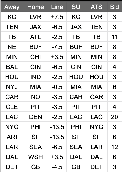 Survivor: 13-5 (KC, CIN, BAL, GB, BUF, TB, LVR, JAX, PHI, TEN, DEN, MIA, DAL, SF, MIN, DET, NYG, HOU)